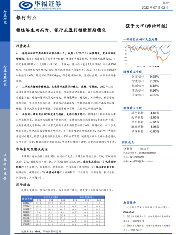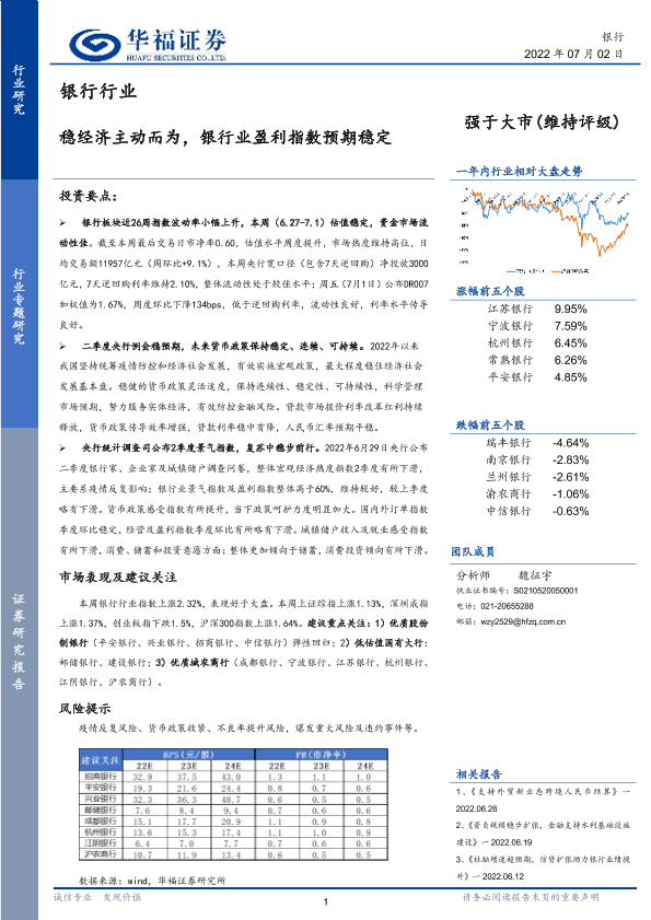【华福证券】【20220702】稳经济主动而为,银行业盈利指数预期稳定-15页