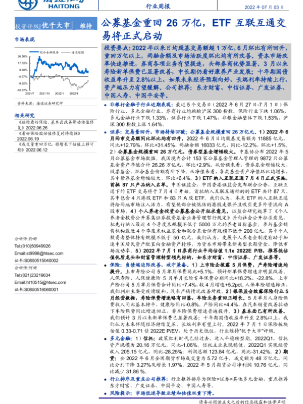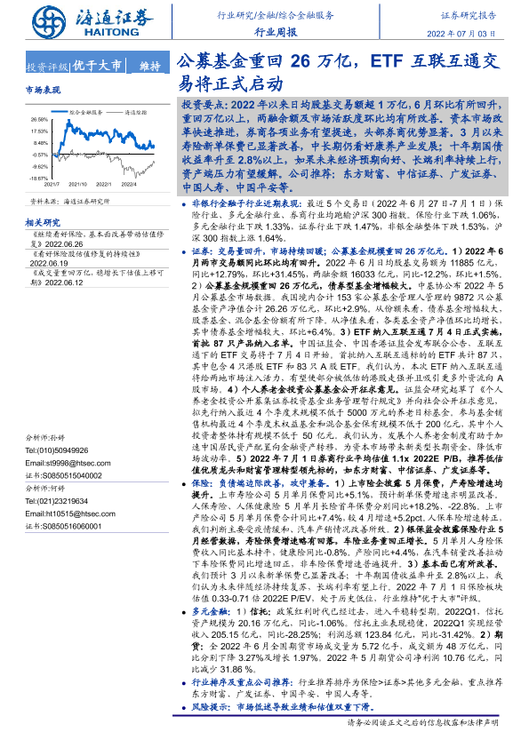 【海通证券】【20220703】金融行业周报:公募基金重回26万亿,ETF互联互通交易将正式启动-11页