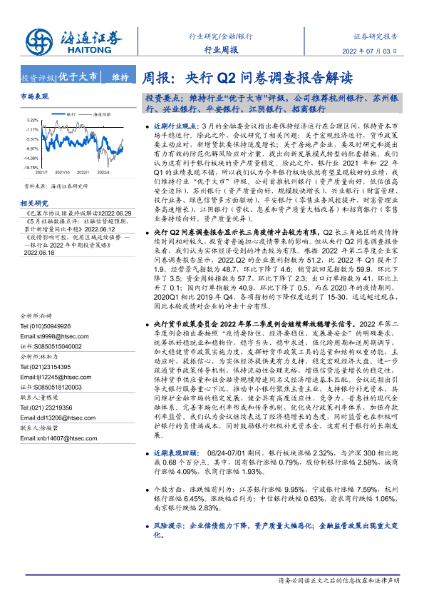 【海通证券】【20220703】银行周报:央行Q2问卷调查报告解读-8页