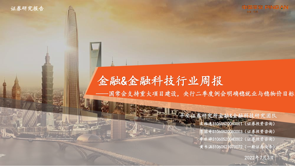 【平安证券】【20220703】金融&金融科技行业周报:国常会支持重大项目建设,央行二季度例会明确稳就业与稳物价目标-17页