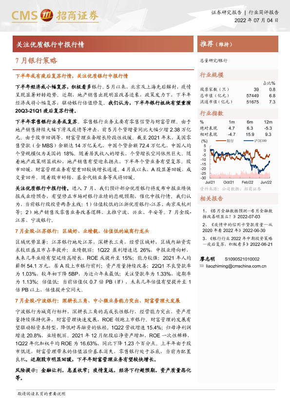 【海通证券】【20220704】7月银行策略:关注优质银行中报行情-3页