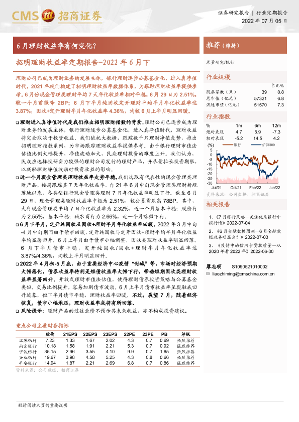 【海通证券】【20220705】2022年6月下:6月理财收益率有何变化?-4页