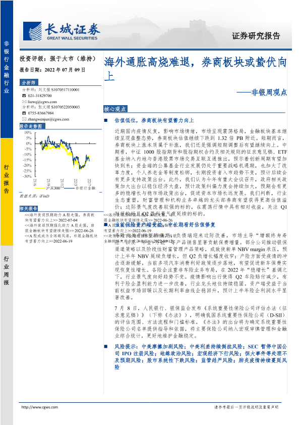 【长城证券】【20220709】非银周观点:海外通胀高烧难退,券商板块或蛰伏向上-34页
