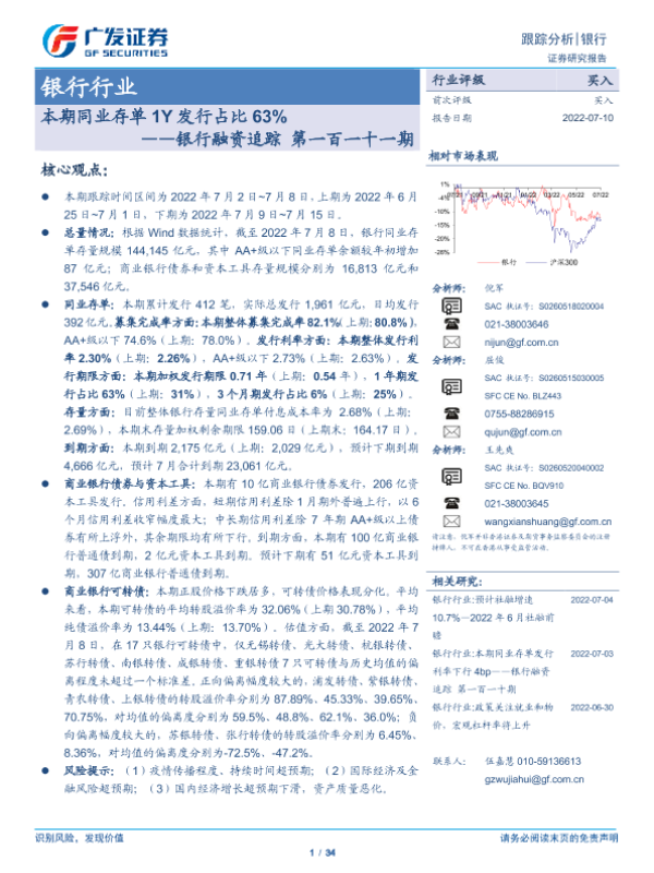 【广发证券】【20220710】银行融资追踪 第一百一十一期:本期同业存单1Y发行占比63%-34页