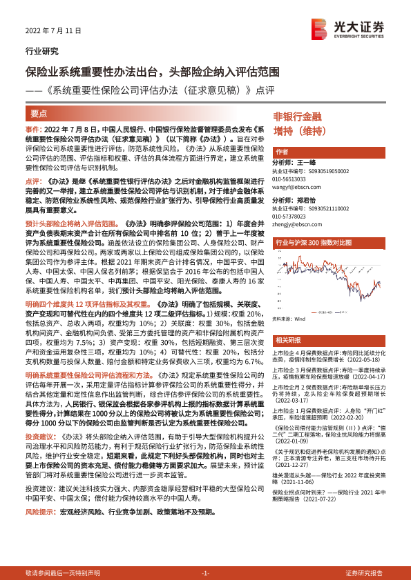 【光大证券】【20220711】系统重要性保险公司评估办法(征求意见稿)点评-2页