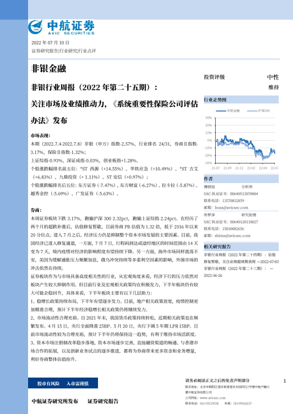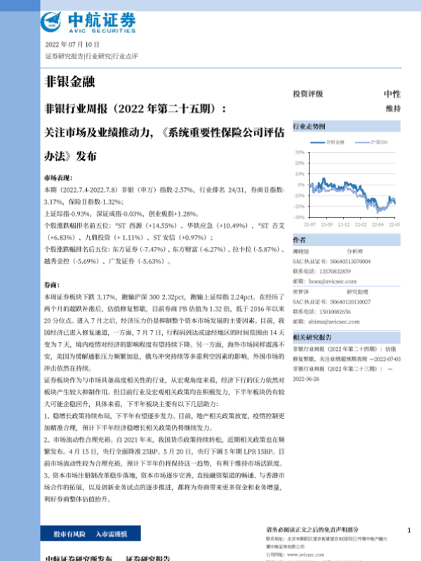 【中航证券】【20220710】非银行业周报:关注市场及业绩推动力,《系统重要性保险公司评估办法》发布-13页