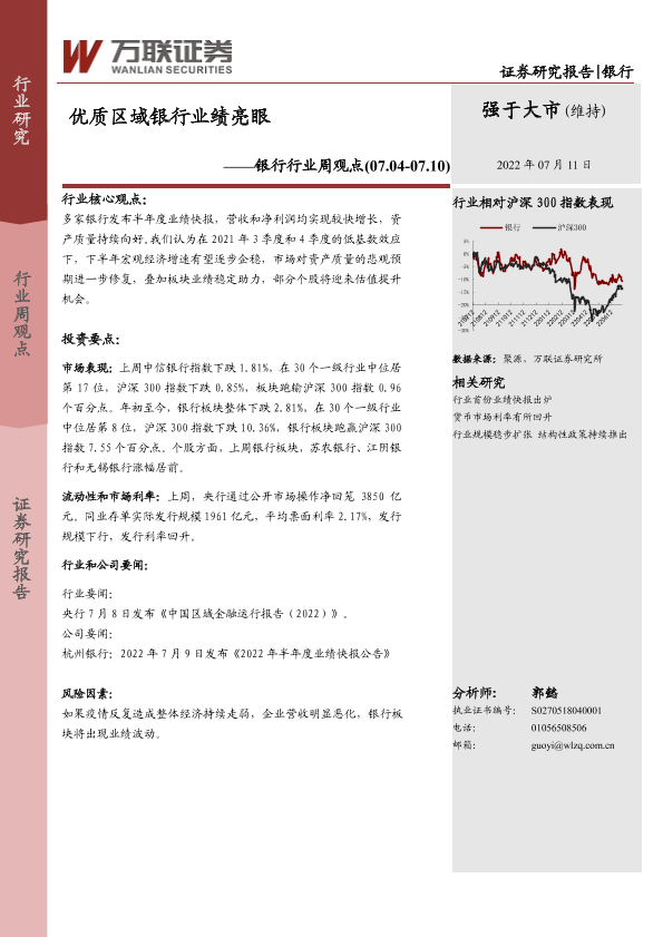 【万联证券】【20220711】优质区域银行业绩亮眼-7页