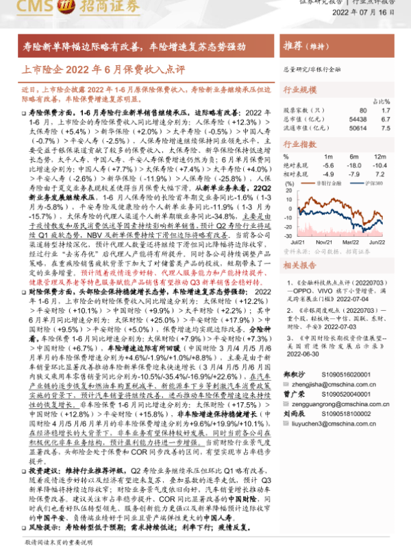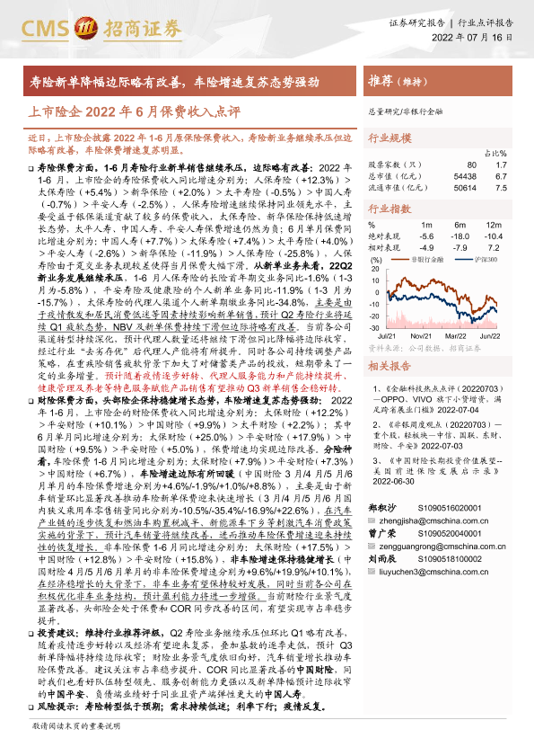 【海通证券】【20220716】上市险企2022年6月保费收入点评-4页