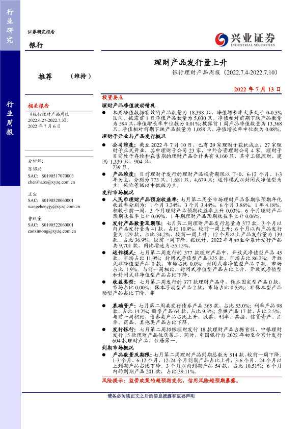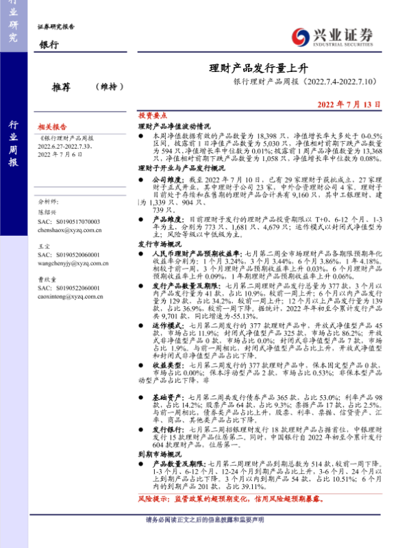 【兴业证券】【20220713】银行理财产品周报:理财产品发行量上升-19页