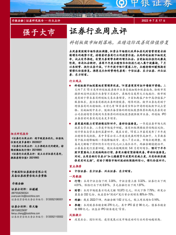 【中银证券】【20220717】证券行业周点评:科创板做市细则落地,业绩边际改善促估值修复-8页