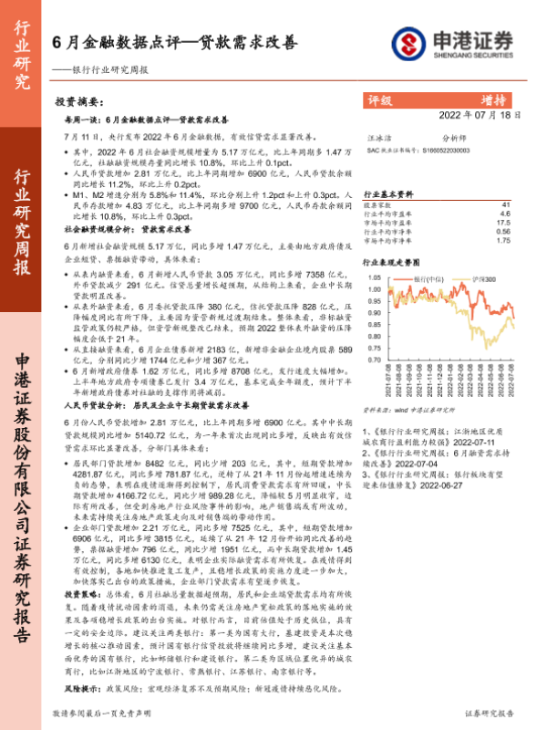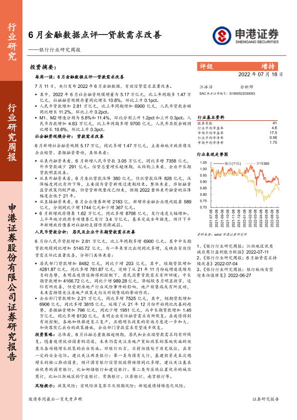 【申港证券】【20220718】6月金融数据点评—贷款需求改善-13页