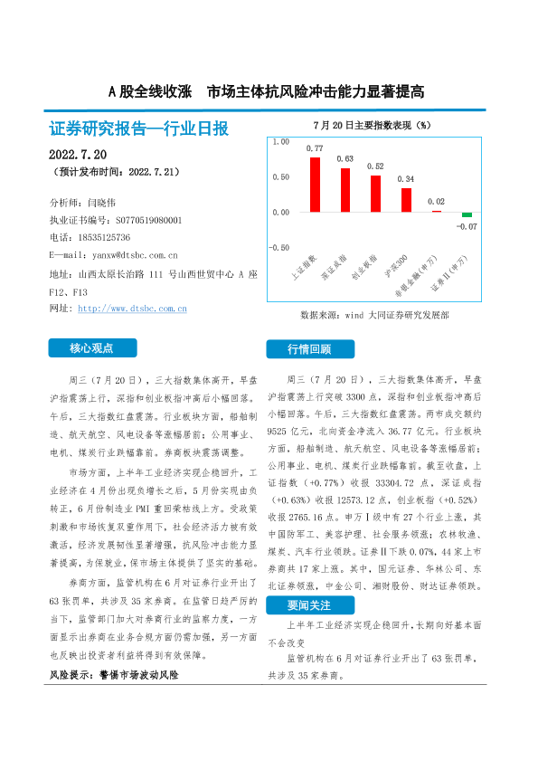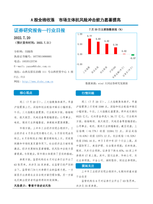 【大同证券】【20220720】A股全线收涨 市场主体抗风险冲击能力显著提高-11页
