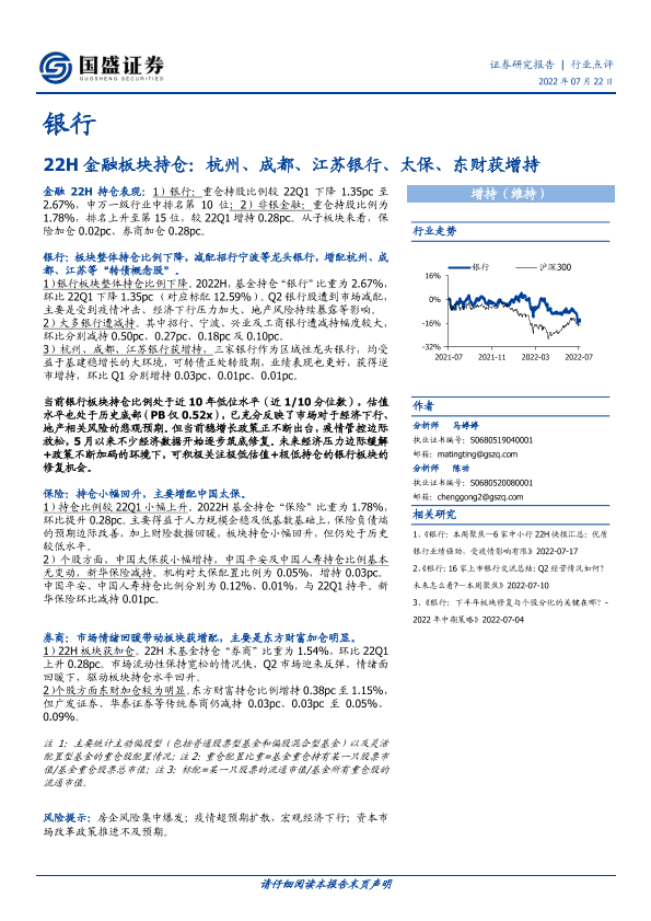 【国盛证券】【20220722】22H金融板块持仓:杭州、成都、江苏银行、太保、东财获增持-4页