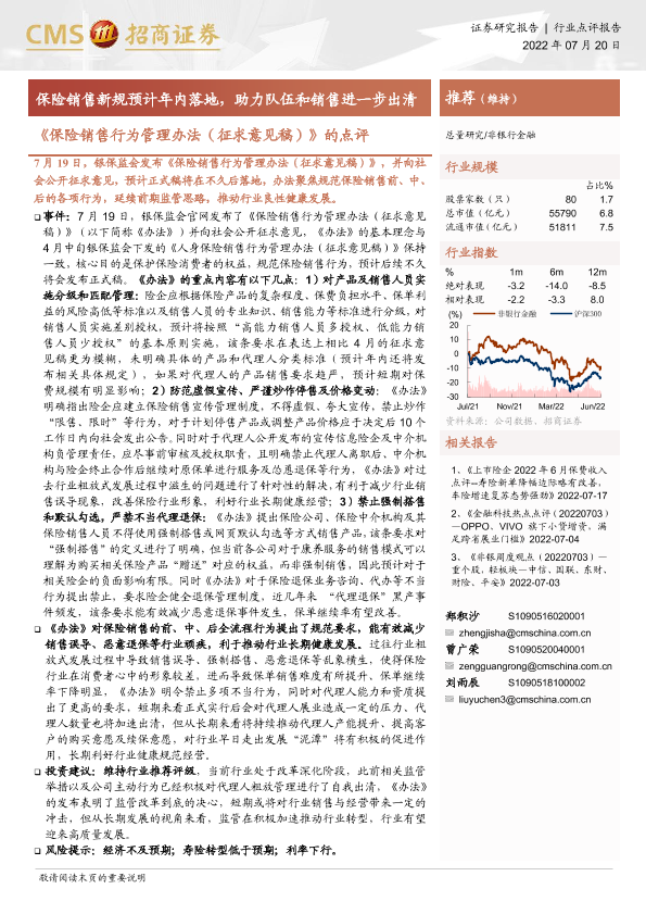 【海通证券】【20220720】《保险销售行为管理办法(征求意见稿)》的点评-4页