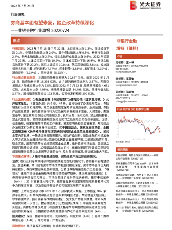 【光大证券】【20220724】非银金融行业周报:券商基本面有望修复,险企改革持续深化-7页