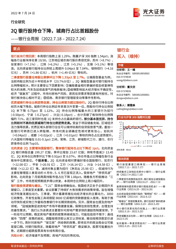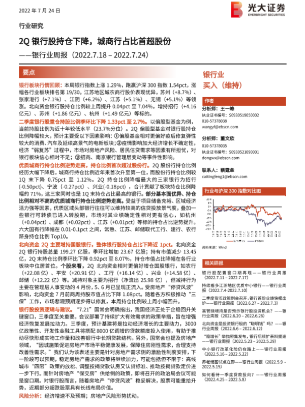 【光大证券】【20220724】银行业周报:2Q银行股持仓下降,城商行占比首超股份-15页
