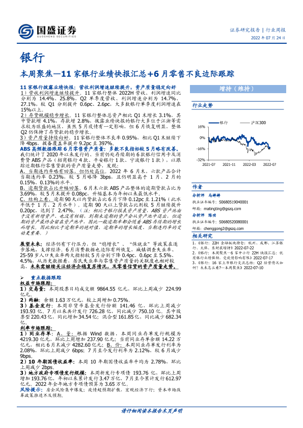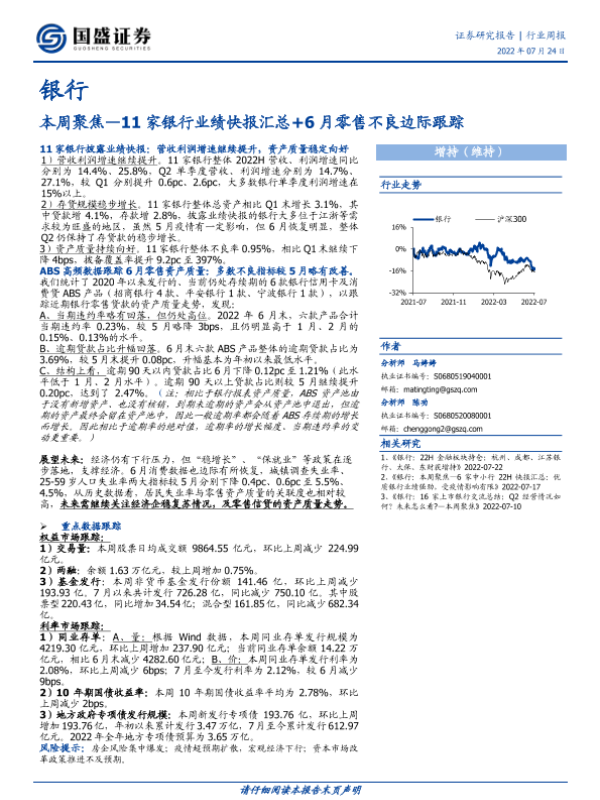 【国盛证券】【20220724】银行本周聚焦:11家银行业绩快报汇总+6月零售不良边际跟踪-12页