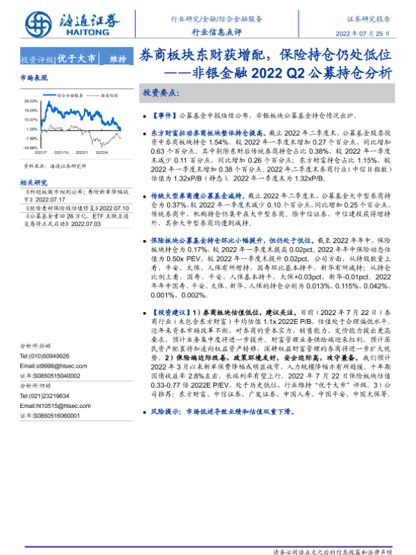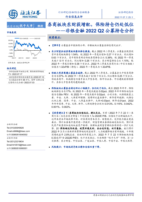 【海通证券】【20220725】非银金融2022Q2公募持仓分析:券商板块东财获增配,保险持仓仍处低位-4页