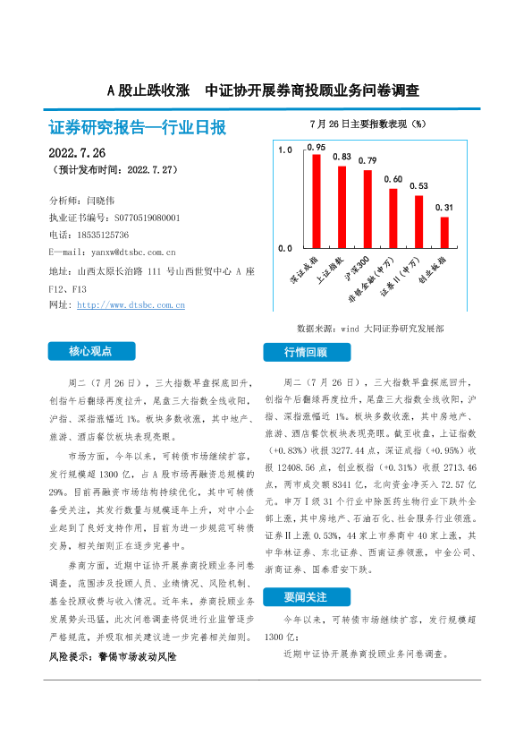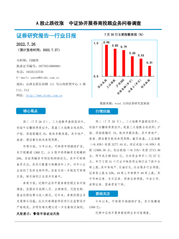 【大同证券】【20220726】非银金融行业日报:A股止跌收涨 中证协开展券商投顾业务问卷调查-10页