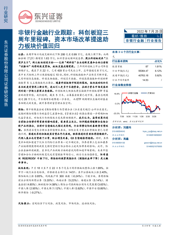 【东兴证券】【20220725】非银行金融行业跟踪:科创板迎三周年里程碑,资本市场改革提速助力板块价值回归-12页