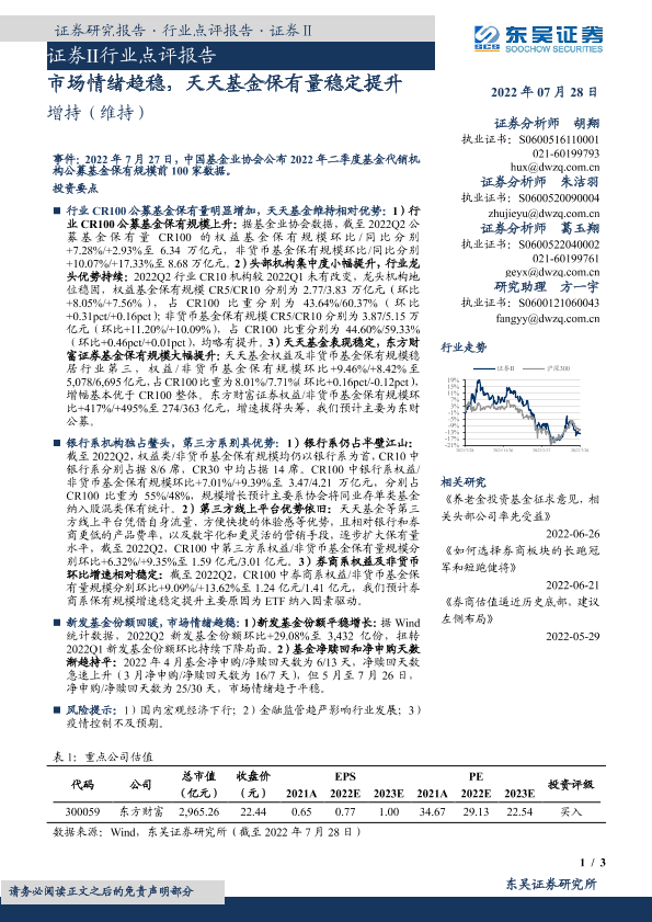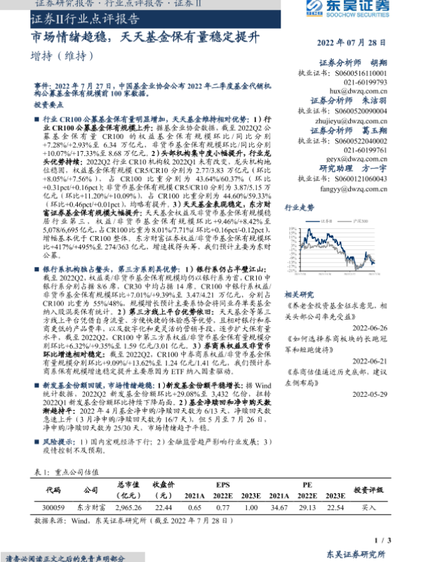 【东吴证券】【20220728】证券Ⅱ行业点评报告:市场情绪趋稳,天天基金保有量稳定提升-3页