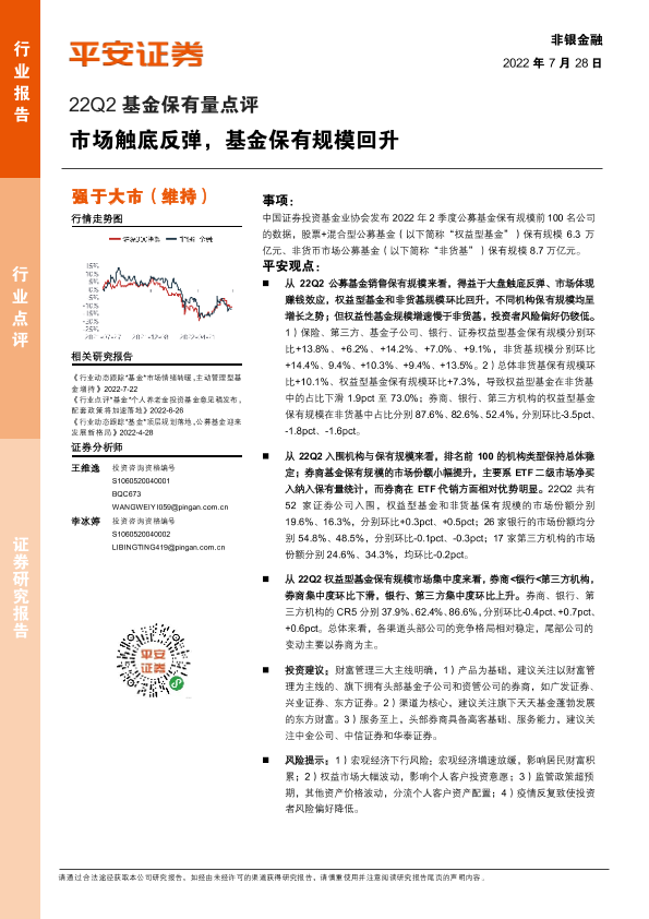 【平安证券】【20220728】22Q2基金保有量点评:市场触底反弹,基金保有规模回升-5页