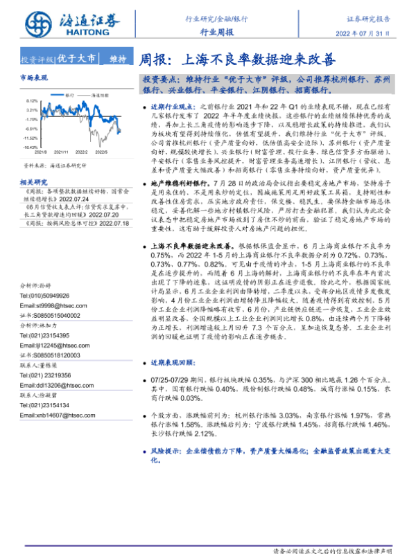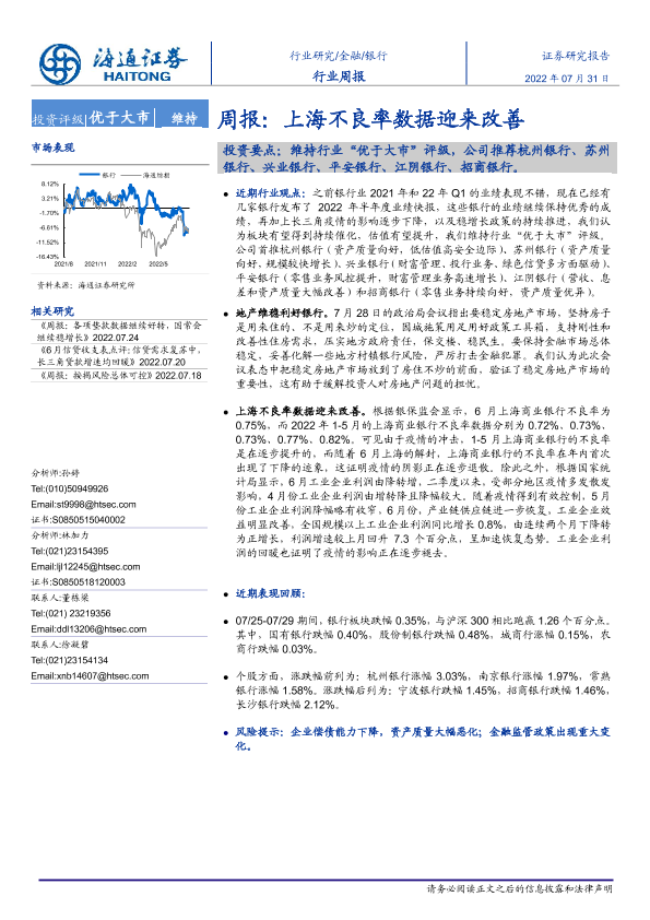 【海通证券】【20220731】银行行业周报:上海不良率数据迎来改善-8页