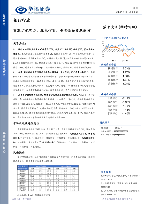 【华福证券】【20220801】贷款扩张有力,绿色信贷、普惠金融贷款高增-17页