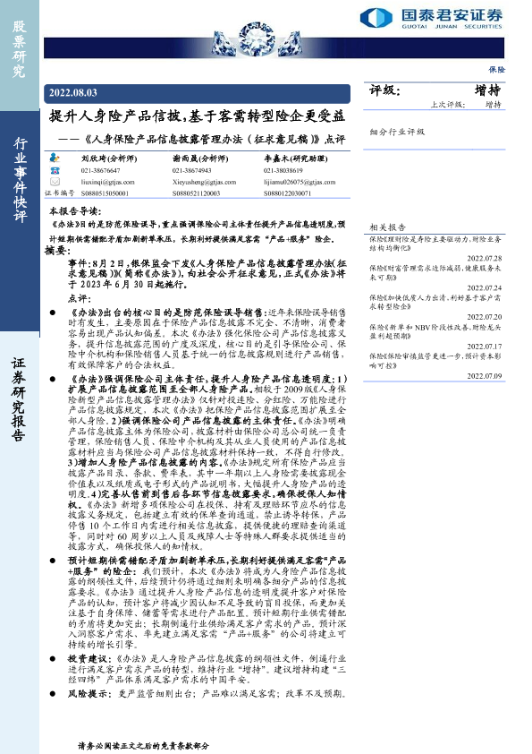 【国泰君安证券】【20220803】提升人身险产品信披,基于客需转型险企更受益-4页