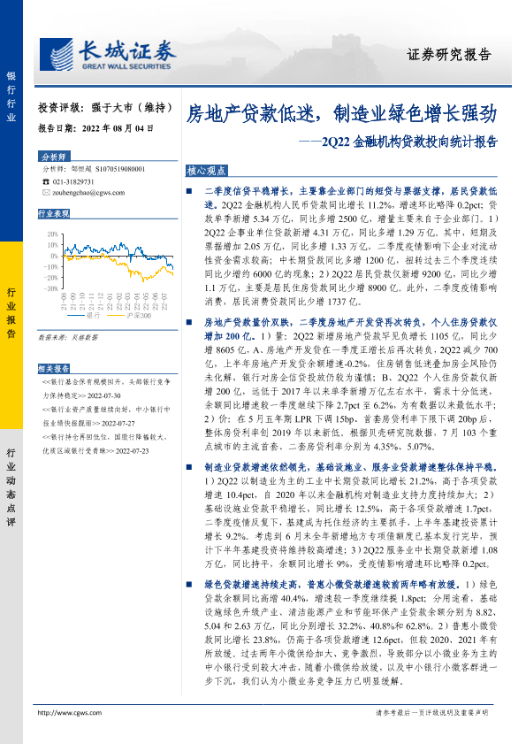 【长城证券】【20220804】2Q22金融机构贷款投向统计报告-5页