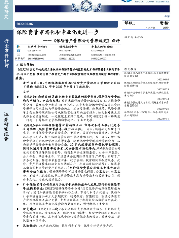 【国泰君安证券】【20220806】《保险资产管理公司管理规定》点评:保险资管市场化和专业化更进一步-3页