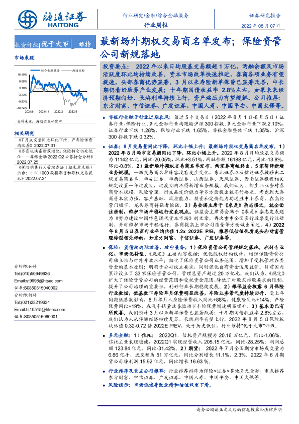 【海通证券】【20220807】综合金融服务行业周报:最新场外期权交易商名单发布;保险资管公司新规落地-12页