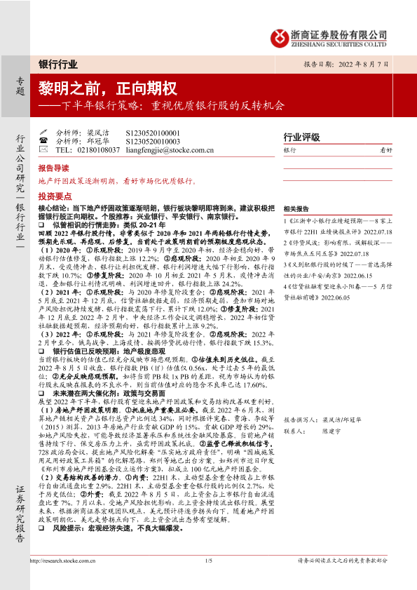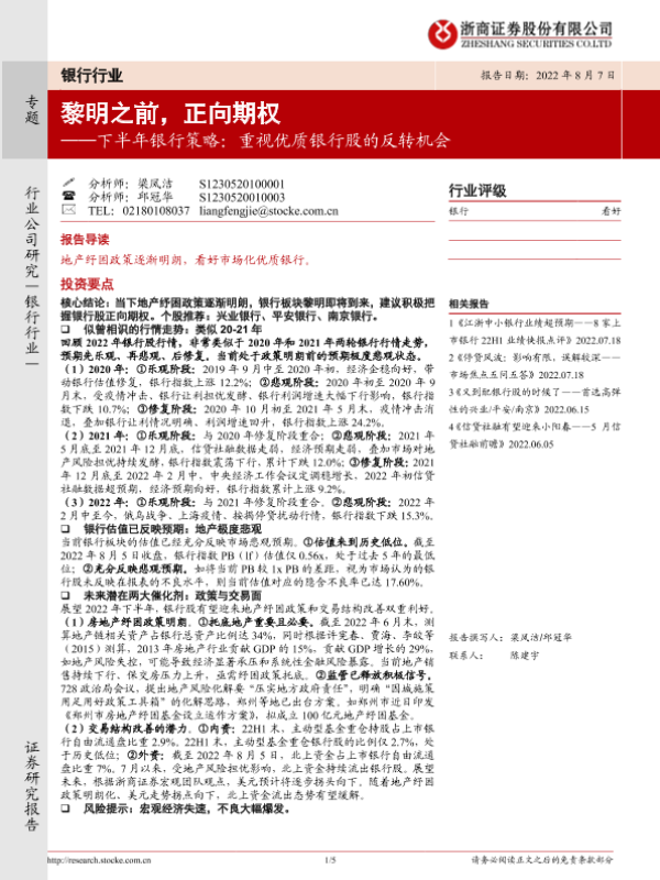 【浙商证券】【20220807】下半年银行策略:重视优质银行股的反转机会:黎明之前,正向期权-5页