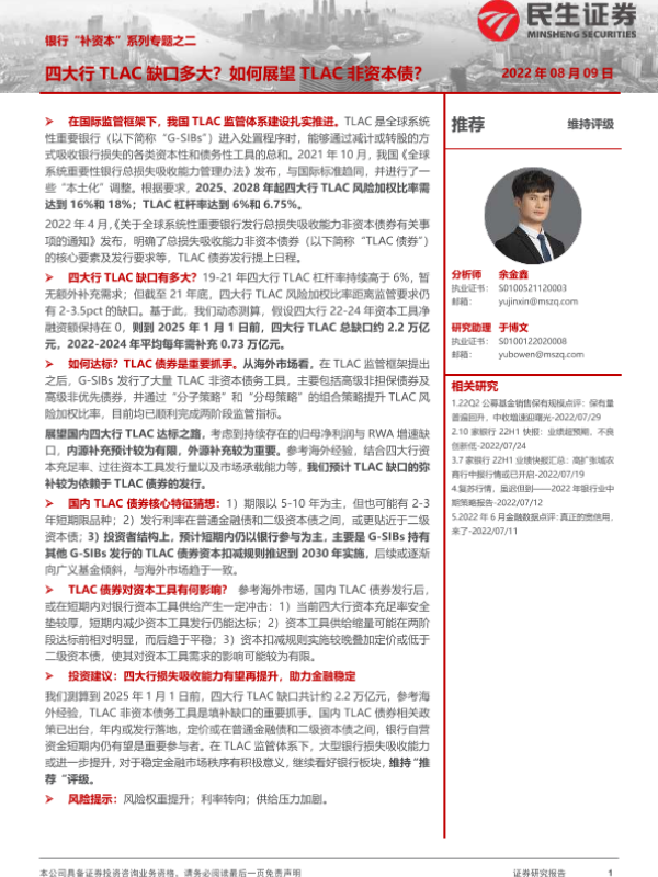 【民生证券】【20220809】银行“补资本”系列专题之二:四大行TLAC缺口多大?如何展望TLAC非资本债?-25页