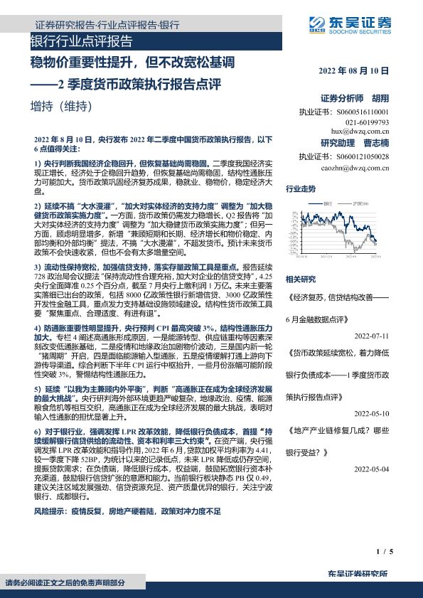 【东吴证券】【20220810】2季度货币政策执行报告点评-稳物价重要性提升,但不改宽松基调-5页