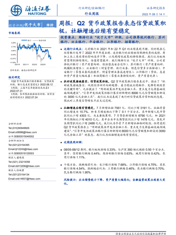 【海通证券】【20220814】Q2货币政策报告表态信贷政策积极,社融增速后续有望稳定-8页