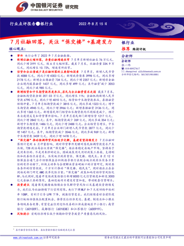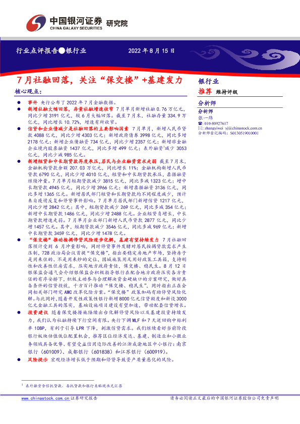 【银河证券】【20220815】7月社融回落,关注“保交楼”+基建发力-4页