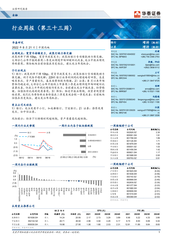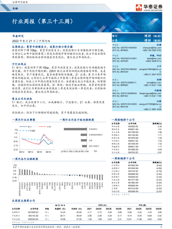 【华泰证券】【20220821】金融行业周报(第三十三周)-29页
