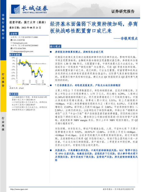 【长城证券】【20220821】非银周观点:经济基本面偏弱下政策持续加码,券商板块战略性配置窗口或已来-34页