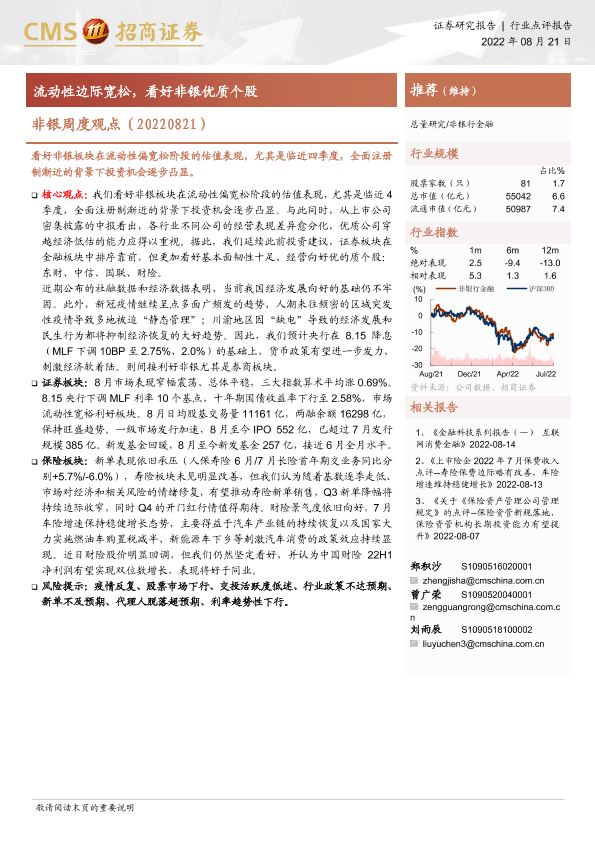 【海通证券】【20220821】非银周度观点:流动性边际宽松,看好非银优质个股-3页
