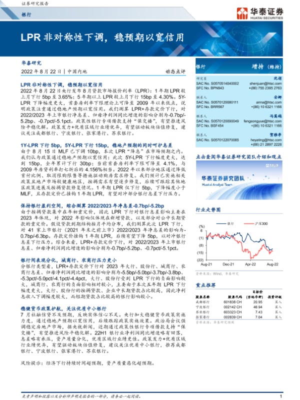 【华泰证券】【20220822】LPR非对称性下调,稳预期以宽信用-8页