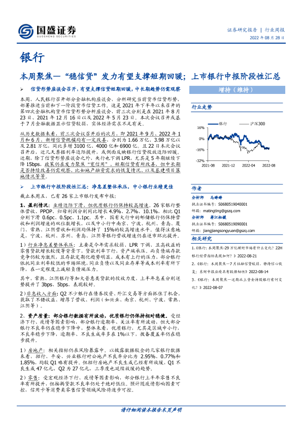 【国盛证券】【20220828】银行本周聚焦:“稳信贷”发力有望支撑短期回暖;上市银行中报阶段性汇总-14页