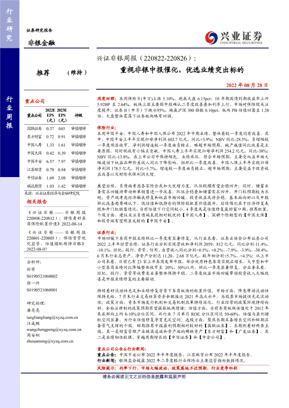 【兴业证券】【20220828】重视非银中报催化,优选业绩突出标的-14页