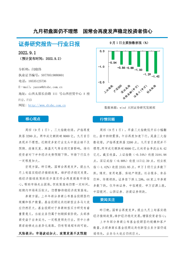 【大同证券】【20220901】九月初盘面仍不理想 国常会再度发声稳定投资者信心-11页