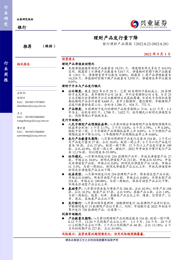 【兴业证券】【20220901】理财产品发行量下降-19页