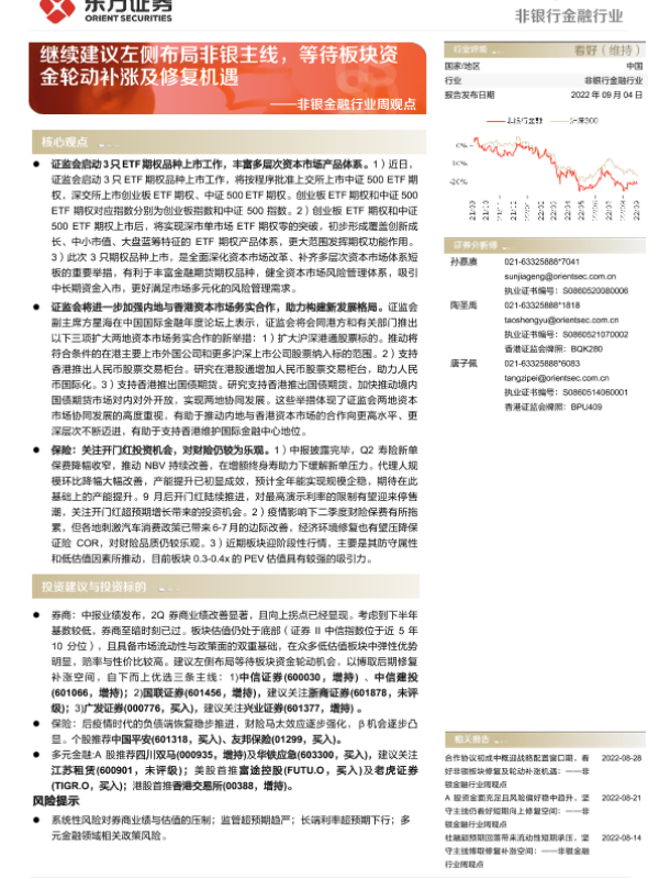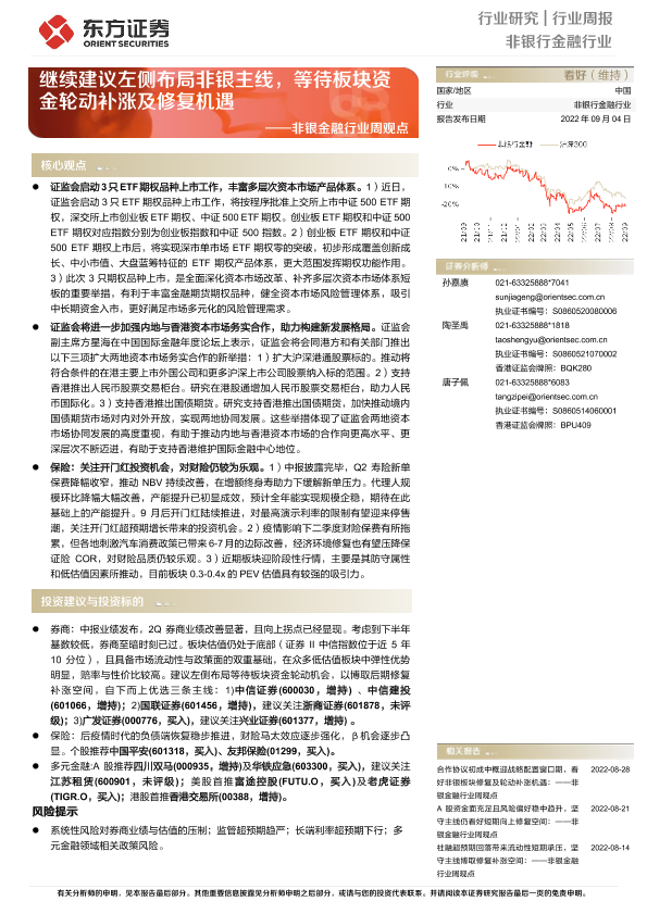 【东方证券】【20220904】非银金融行业周观点:继续建议左侧布局非银主线,等待板块资金轮动补涨及修复机遇-13页