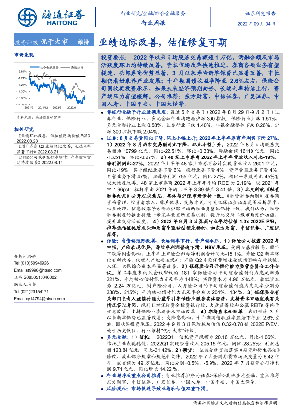 【海通证券】【20220904】综合金融服务行业周报:业绩边际改善,估值修复可期-12页