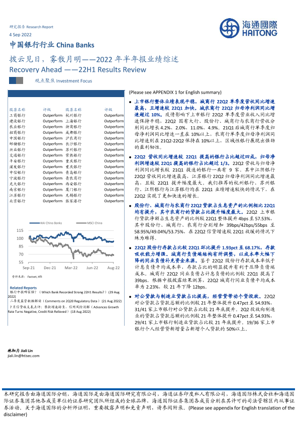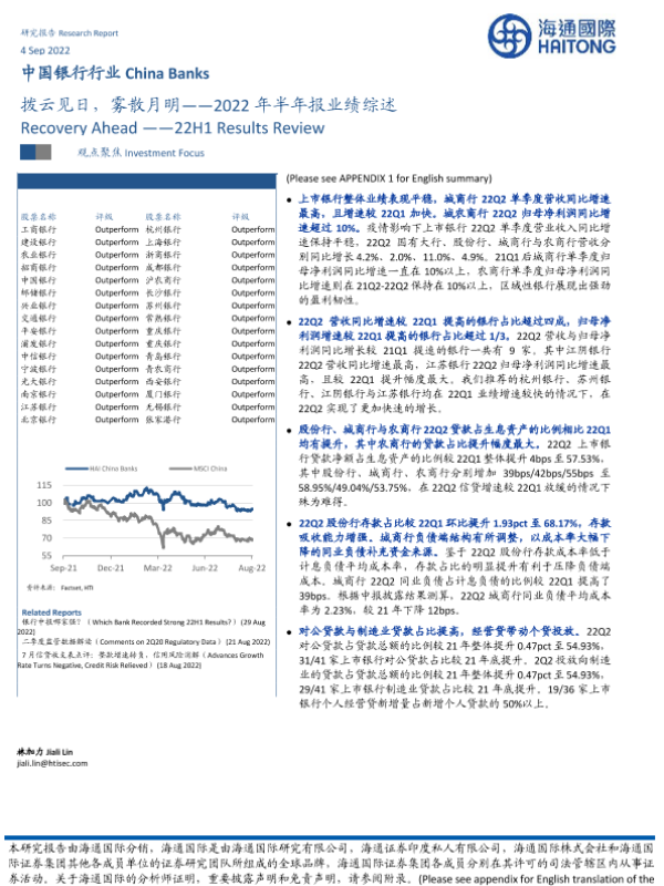 【海通国际】【20220904】中国银行行业2022年半年报业绩综述:拨云见日,雾散月明-23页