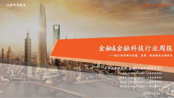 【平安证券】【20220904】金融&金融科技行业周报:银行营收增长放缓,券商、保险整体业绩承压-17页