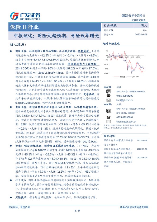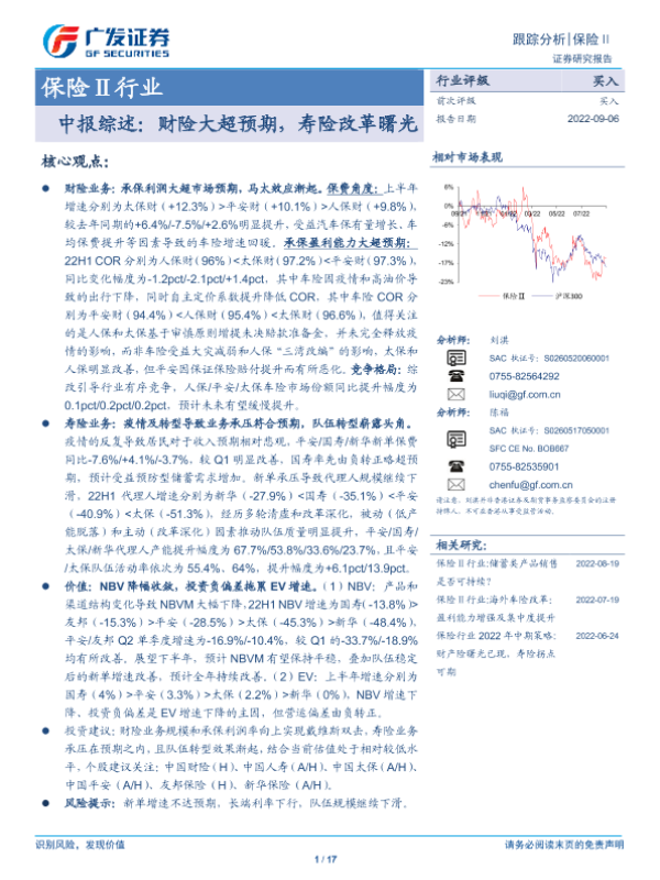 【广发证券】【20220906】保险Ⅱ行业中报综述:财险大超预期,寿险改革曙光-17页